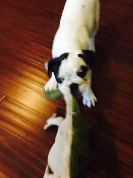 Two nights ago Kevin asked me to come over. He sat me on his couch and said, "Girlfriend, I have something for you. It's a surprise. You must close your eyes." When I opened them I saw the cutest creature I'd ever laid my eyes on! He knew I'd been scanning ads and rescue groups endlessly trying to find a bulldog, with no luck. He knew I couldn't afford most, so I was limited in my search. All I have to say is that this (she) is THE most amazing gift I have ever received!! Thank you, Sweetheart! I am sooo happy to have Panda Bear the Frenchie as my newest loving companion!!