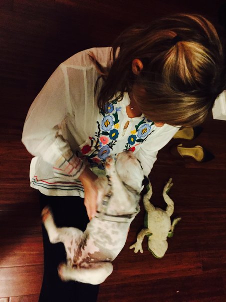 Two nights ago Kevin asked me to come over. He sat me on his couch and said, "Girlfriend, I have something for you. It's a surprise. You must close your eyes." When I opened them I saw the cutest creature I'd ever laid my eyes on! He knew I'd been scanning ads and rescue groups endlessly trying to find a bulldog, with no luck. He knew I couldn't afford most, so I was limited in my search. All I have to say is that this (she) is THE most amazing gift I have ever received!! Thank you, Sweetheart! I am sooo happy to have Panda Bear the Frenchie as my newest loving companion!!