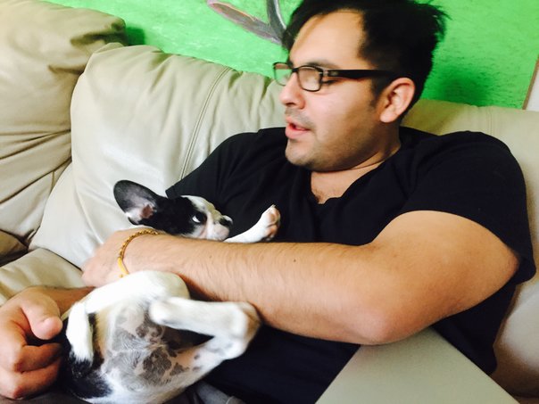 Two nights ago Kevin asked me to come over. He sat me on his couch and said, "Girlfriend, I have something for you. It's a surprise. You must close your eyes." When I opened them I saw the cutest creature I'd ever laid my eyes on! He knew I'd been scanning ads and rescue groups endlessly trying to find a bulldog, with no luck. He knew I couldn't afford most, so I was limited in my search. All I have to say is that this (she) is THE most amazing gift I have ever received!! Thank you, Sweetheart! I am sooo happy to have Panda Bear the Frenchie as my newest loving companion!!