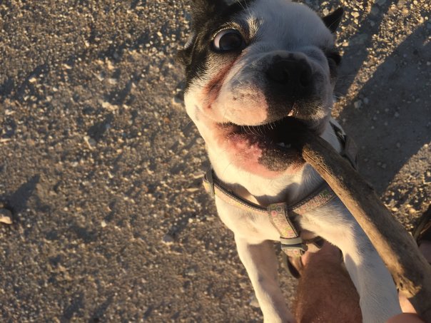 Two nights ago Kevin asked me to come over. He sat me on his couch and said, "Girlfriend, I have something for you. It's a surprise. You must close your eyes." When I opened them I saw the cutest creature I'd ever laid my eyes on! He knew I'd been scanning ads and rescue groups endlessly trying to find a bulldog, with no luck. He knew I couldn't afford most, so I was limited in my search. All I have to say is that this (she) is THE most amazing gift I have ever received!! Thank you, Sweetheart! I am sooo happy to have Panda Bear the Frenchie as my newest loving companion!!