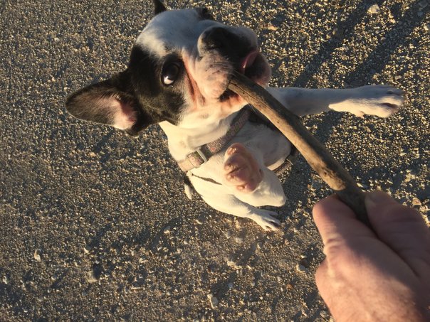 Two nights ago Kevin asked me to come over. He sat me on his couch and said, "Girlfriend, I have something for you. It's a surprise. You must close your eyes." When I opened them I saw the cutest creature I'd ever laid my eyes on! He knew I'd been scanning ads and rescue groups endlessly trying to find a bulldog, with no luck. He knew I couldn't afford most, so I was limited in my search. All I have to say is that this (she) is THE most amazing gift I have ever received!! Thank you, Sweetheart! I am sooo happy to have Panda Bear the Frenchie as my newest loving companion!!
