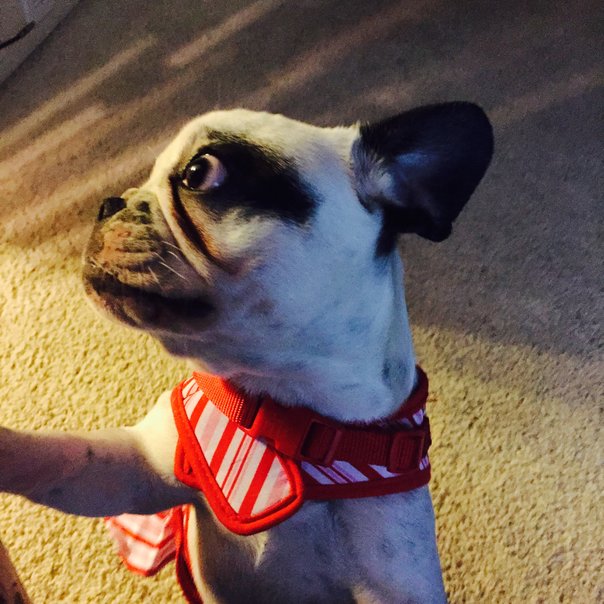 Two nights ago Kevin asked me to come over. He sat me on his couch and said, "Girlfriend, I have something for you. It's a surprise. You must close your eyes." When I opened them I saw the cutest creature I'd ever laid my eyes on! He knew I'd been scanning ads and rescue groups endlessly trying to find a bulldog, with no luck. He knew I couldn't afford most, so I was limited in my search. All I have to say is that this (she) is THE most amazing gift I have ever received!! Thank you, Sweetheart! I am sooo happy to have Panda Bear the Frenchie as my newest loving companion!!