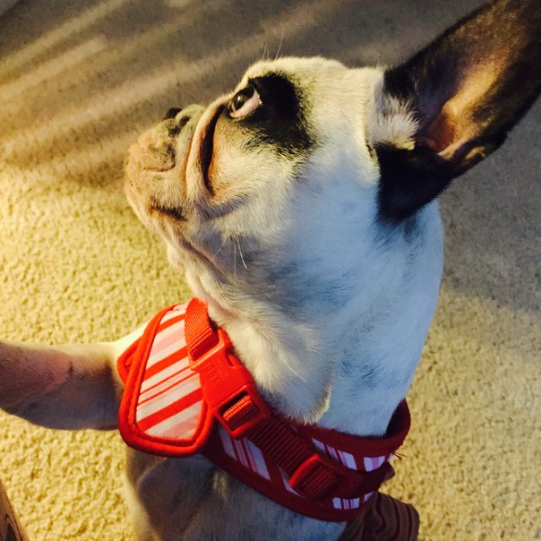Two nights ago Kevin asked me to come over. He sat me on his couch and said, "Girlfriend, I have something for you. It's a surprise. You must close your eyes." When I opened them I saw the cutest creature I'd ever laid my eyes on! He knew I'd been scanning ads and rescue groups endlessly trying to find a bulldog, with no luck. He knew I couldn't afford most, so I was limited in my search. All I have to say is that this (she) is THE most amazing gift I have ever received!! Thank you, Sweetheart! I am sooo happy to have Panda Bear the Frenchie as my newest loving companion!!