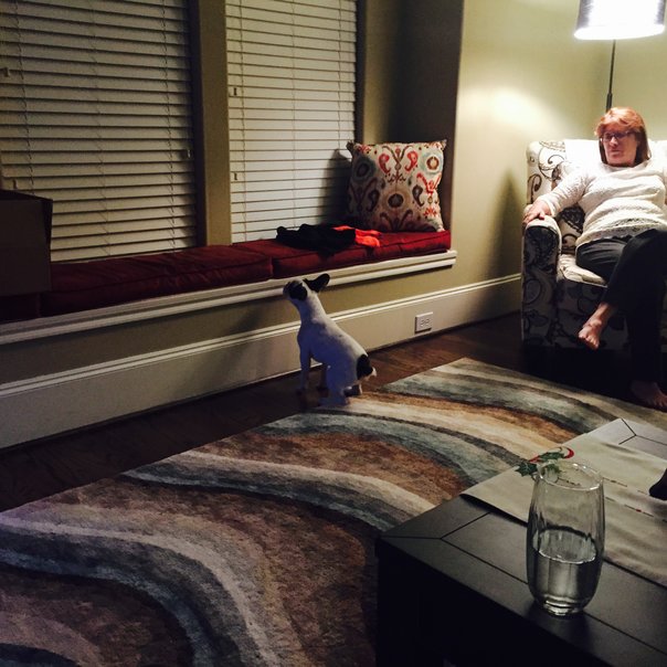 Two nights ago Kevin asked me to come over. He sat me on his couch and said, "Girlfriend, I have something for you. It's a surprise. You must close your eyes." When I opened them I saw the cutest creature I'd ever laid my eyes on! He knew I'd been scanning ads and rescue groups endlessly trying to find a bulldog, with no luck. He knew I couldn't afford most, so I was limited in my search. All I have to say is that this (she) is THE most amazing gift I have ever received!! Thank you, Sweetheart! I am sooo happy to have Panda Bear the Frenchie as my newest loving companion!!