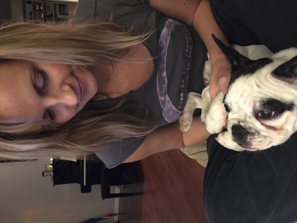 Two nights ago Kevin asked me to come over. He sat me on his couch and said, "Girlfriend, I have something for you. It's a surprise. You must close your eyes." When I opened them I saw the cutest creature I'd ever laid my eyes on! He knew I'd been scanning ads and rescue groups endlessly trying to find a bulldog, with no luck. He knew I couldn't afford most, so I was limited in my search. All I have to say is that this (she) is THE most amazing gift I have ever received!! Thank you, Sweetheart! I am sooo happy to have Panda Bear the Frenchie as my newest loving companion!!