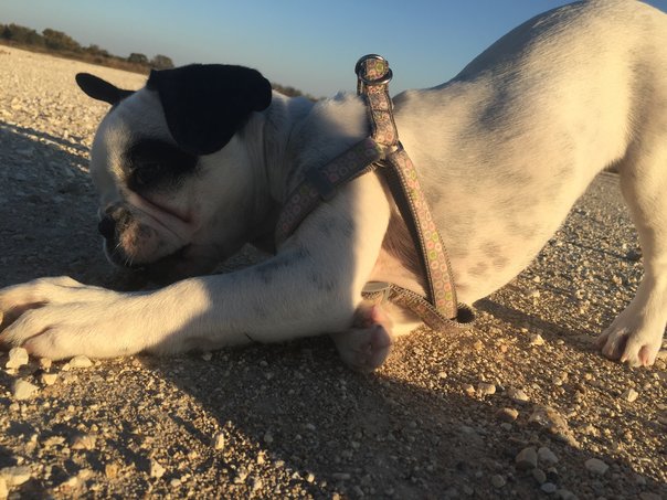 Two nights ago Kevin asked me to come over. He sat me on his couch and said, "Girlfriend, I have something for you. It's a surprise. You must close your eyes." When I opened them I saw the cutest creature I'd ever laid my eyes on! He knew I'd been scanning ads and rescue groups endlessly trying to find a bulldog, with no luck. He knew I couldn't afford most, so I was limited in my search. All I have to say is that this (she) is THE most amazing gift I have ever received!! Thank you, Sweetheart! I am sooo happy to have Panda Bear the Frenchie as my newest loving companion!!