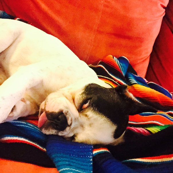 Two nights ago Kevin asked me to come over. He sat me on his couch and said, "Girlfriend, I have something for you. It's a surprise. You must close your eyes." When I opened them I saw the cutest creature I'd ever laid my eyes on! He knew I'd been scanning ads and rescue groups endlessly trying to find a bulldog, with no luck. He knew I couldn't afford most, so I was limited in my search. All I have to say is that this (she) is THE most amazing gift I have ever received!! Thank you, Sweetheart! I am sooo happy to have Panda Bear the Frenchie as my newest loving companion!!