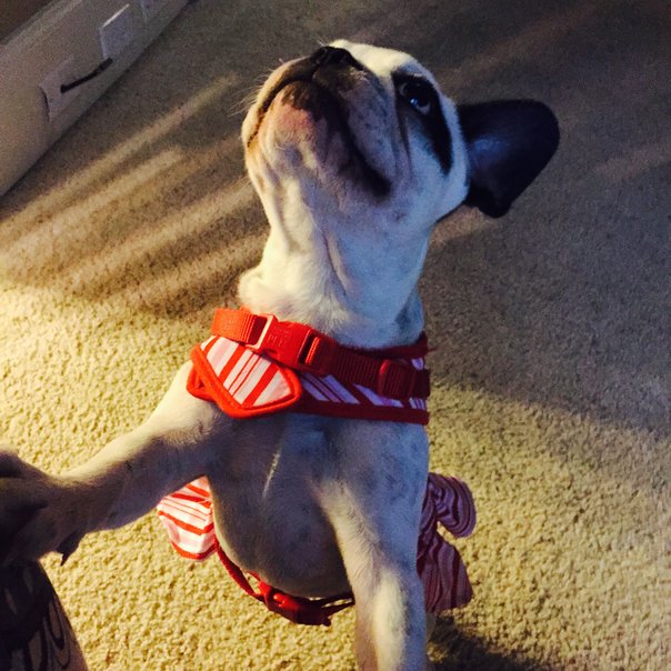 Two nights ago Kevin asked me to come over. He sat me on his couch and said, "Girlfriend, I have something for you. It's a surprise. You must close your eyes." When I opened them I saw the cutest creature I'd ever laid my eyes on! He knew I'd been scanning ads and rescue groups endlessly trying to find a bulldog, with no luck. He knew I couldn't afford most, so I was limited in my search. All I have to say is that this (she) is THE most amazing gift I have ever received!! Thank you, Sweetheart! I am sooo happy to have Panda Bear the Frenchie as my newest loving companion!!