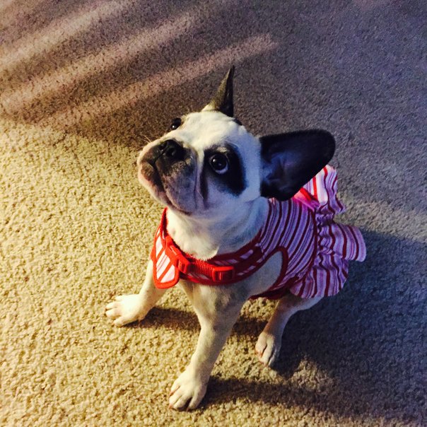 Two nights ago Kevin asked me to come over. He sat me on his couch and said, "Girlfriend, I have something for you. It's a surprise. You must close your eyes." When I opened them I saw the cutest creature I'd ever laid my eyes on! He knew I'd been scanning ads and rescue groups endlessly trying to find a bulldog, with no luck. He knew I couldn't afford most, so I was limited in my search. All I have to say is that this (she) is THE most amazing gift I have ever received!! Thank you, Sweetheart! I am sooo happy to have Panda Bear the Frenchie as my newest loving companion!!