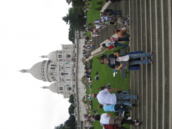 We adjusted to Paris rather quickly yesterday and went to the Louvre last night. The museum grants free admission to everyone under 26 on Friday nights, so we felt very travel smart as we enjoyed 3 hours of mummies, artifacts, and of course, Mona. After our visit to perhaps the best museum I have ever seen, Tracy informs me that for dinner she wants some "pomme frites." In France, as you may already know, that you don't have to call the fries French. After our dinner we headed back for a rest and hit the Montmartre quarter for the flea market today. Then we walked to the Moulin Rouge, The Sacred Heart Basilica, and a cemetary whose headstones include Proust, Oscar Wilde, Chopin, and Jim Morrison. Guess whose headstone had the most security? Apparantly, Morrison's fans have been a bit rowdy over the years and now there is a guard as well as a code of conduct leaflet outlining the rules for visiting his remains. I wonder how Jim feels about these restrictions. Keep reading for one more day of Paris excitment!