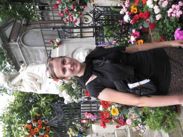 We adjusted to Paris rather quickly yesterday and went to the Louvre last night. The museum grants free admission to everyone under 26 on Friday nights, so we felt very travel smart as we enjoyed 3 hours of mummies, artifacts, and of course, Mona. After our visit to perhaps the best museum I have ever seen, Tracy informs me that for dinner she wants some "pomme frites." In France, as you may already know, that you don't have to call the fries French. After our dinner we headed back for a rest and hit the Montmartre quarter for the flea market today. Then we walked to the Moulin Rouge, The Sacred Heart Basilica, and a cemetary whose headstones include Proust, Oscar Wilde, Chopin, and Jim Morrison. Guess whose headstone had the most security? Apparantly, Morrison's fans have been a bit rowdy over the years and now there is a guard as well as a code of conduct leaflet outlining the rules for visiting his remains. I wonder how Jim feels about these restrictions. Keep reading for one more day of Paris excitment!