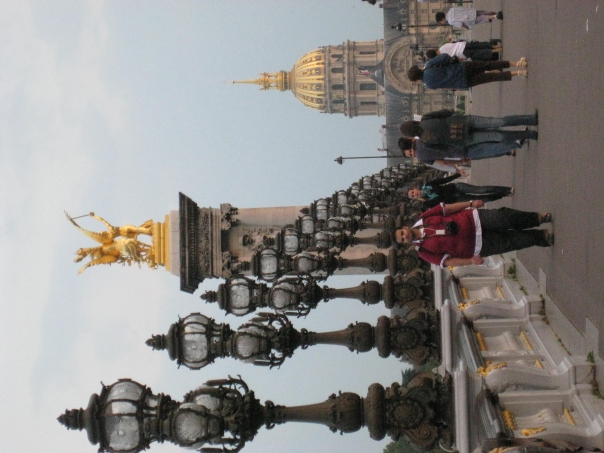 We adjusted to Paris rather quickly yesterday and went to the Louvre last night. The museum grants free admission to everyone under 26 on Friday nights, so we felt very travel smart as we enjoyed 3 hours of mummies, artifacts, and of course, Mona. After our visit to perhaps the best museum I have ever seen, Tracy informs me that for dinner she wants some "pomme frites." In France, as you may already know, that you don't have to call the fries French. After our dinner we headed back for a rest and hit the Montmartre quarter for the flea market today. Then we walked to the Moulin Rouge, The Sacred Heart Basilica, and a cemetary whose headstones include Proust, Oscar Wilde, Chopin, and Jim Morrison. Guess whose headstone had the most security? Apparantly, Morrison's fans have been a bit rowdy over the years and now there is a guard as well as a code of conduct leaflet outlining the rules for visiting his remains. I wonder how Jim feels about these restrictions. Keep reading for one more day of Paris excitment!