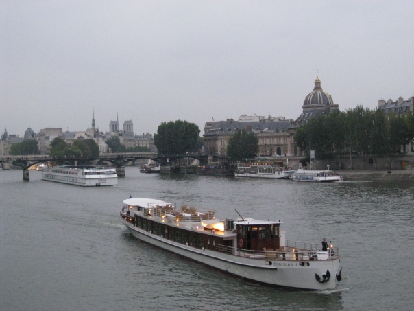 We adjusted to Paris rather quickly yesterday and went to the Louvre last night. The museum grants free admission to everyone under 26 on Friday nights, so we felt very travel smart as we enjoyed 3 hours of mummies, artifacts, and of course, Mona. After our visit to perhaps the best museum I have ever seen, Tracy informs me that for dinner she wants some "pomme frites." In France, as you may already know, that you don't have to call the fries French. After our dinner we headed back for a rest and hit the Montmartre quarter for the flea market today. Then we walked to the Moulin Rouge, The Sacred Heart Basilica, and a cemetary whose headstones include Proust, Oscar Wilde, Chopin, and Jim Morrison. Guess whose headstone had the most security? Apparantly, Morrison's fans have been a bit rowdy over the years and now there is a guard as well as a code of conduct leaflet outlining the rules for visiting his remains. I wonder how Jim feels about these restrictions. Keep reading for one more day of Paris excitment!