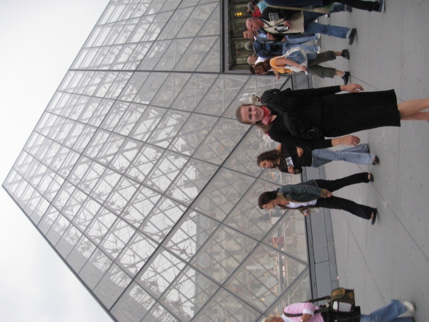 People in front of glass pryamid at the Louve.