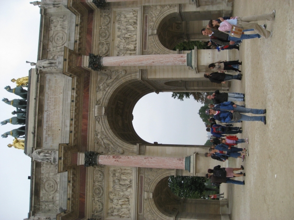 We adjusted to Paris rather quickly yesterday and went to the Louvre last night. The museum grants free admission to everyone under 26 on Friday nights, so we felt very travel smart as we enjoyed 3 hours of mummies, artifacts, and of course, Mona. After our visit to perhaps the best museum I have ever seen, Tracy informs me that for dinner she wants some "pomme frites." In France, as you may already know, that you don't have to call the fries French. After our dinner we headed back for a rest and hit the Montmartre quarter for the flea market today. Then we walked to the Moulin Rouge, The Sacred Heart Basilica, and a cemetary whose headstones include Proust, Oscar Wilde, Chopin, and Jim Morrison. Guess whose headstone had the most security? Apparantly, Morrison's fans have been a bit rowdy over the years and now there is a guard as well as a code of conduct leaflet outlining the rules for visiting his remains. I wonder how Jim feels about these restrictions. Keep reading for one more day of Paris excitment!