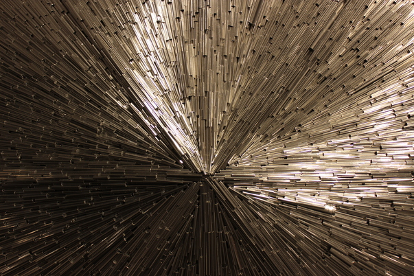 Very detailed art work that appears to have been made with metal beams.