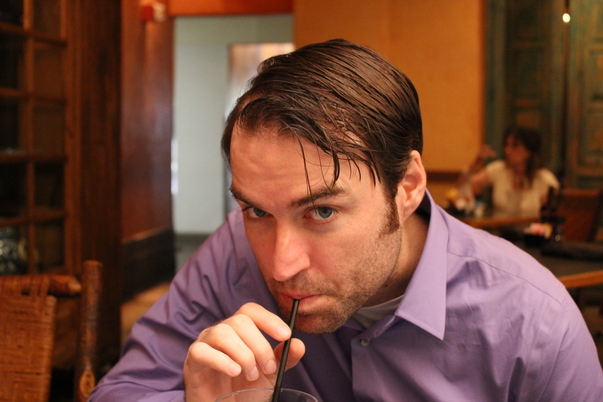 In need of a shave and shower the homeless man sipped his drink pensively.