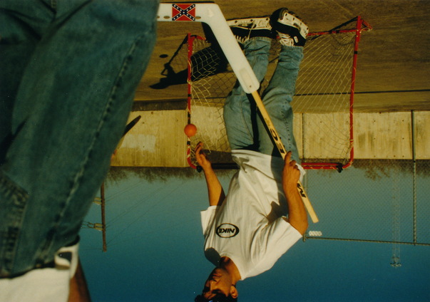The British hockey player chooses to play on land instead of ice, but faces the opposition down just the same. |