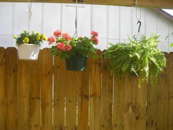 Lovely hanging plants bathing in the mid day sun.