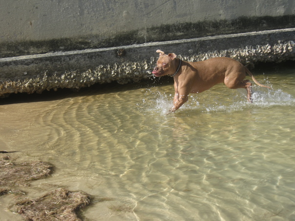 The highlight was when he was standing in the water and a SCUBA diver emerged about 50 feet away. It scared the hell out of Brewster and he continued barking at the guy until we actually walked away with him.