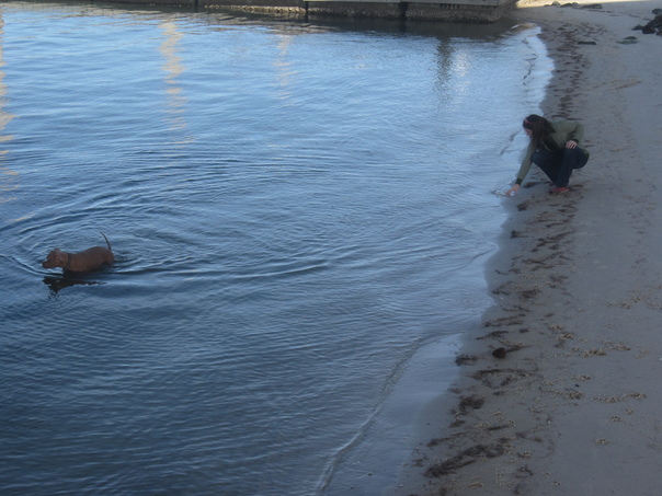 The highlight was when he was standing in the water and a SCUBA diver emerged about 50 feet away. It scared the hell out of Brewster and he continued barking at the guy until we actually walked away with him.