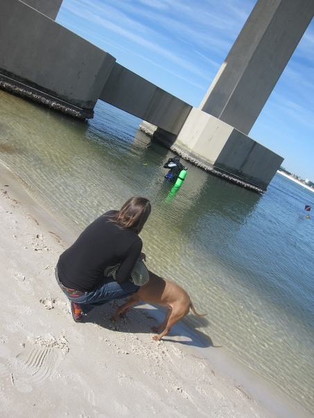 The highlight was when he was standing in the water and a SCUBA diver emerged about 50 feet away. It scared the hell out of Brewster and he continued barking at the guy until we actually walked away with him.