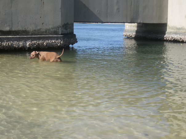 The highlight was when he was standing in the water and a SCUBA diver emerged about 50 feet away. It scared the hell out of Brewster and he continued barking at the guy until we actually walked away with him.