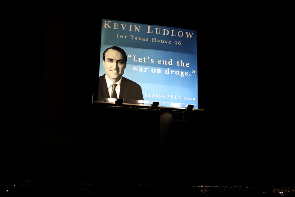 This is a political billboard for Kevin Ludlow taken during the night.