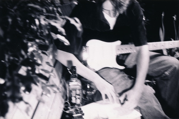 The guitarist leafs through lyrics with a bottle of bourbon by his side. |