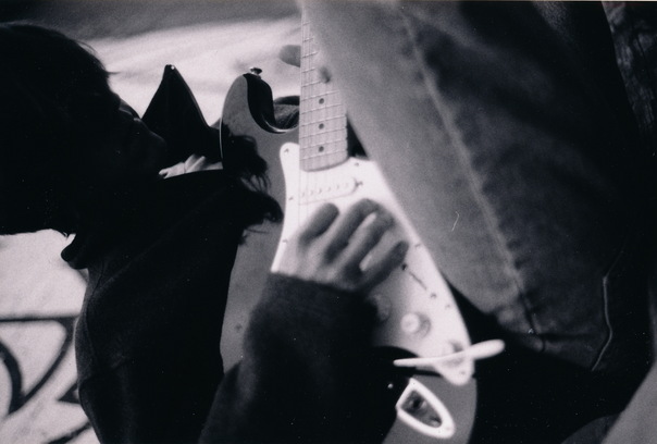 A person in a dark shirt and jeans is strumming on a guitar. |