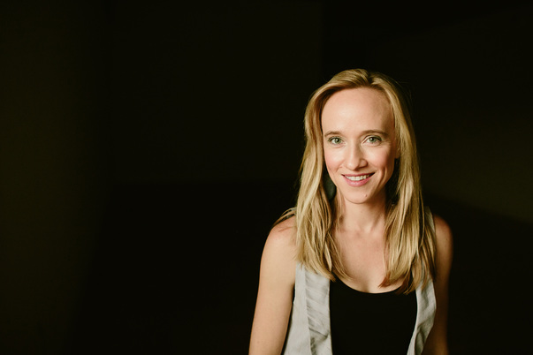A gorgeous young blonde woman smiling towards at the camera.
