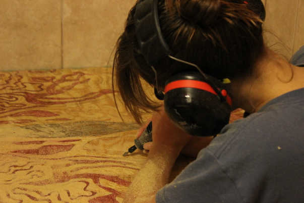 ![]() Plywood Print Etching Austin, TX Adrienne took one of her favorite drawings and turned it into a wood print. The process consisted of projecting her original drawing onto the plywood, tracing the pattern out, and then cutting away all of the low areas. She started doing this by hand, but found the Dremel to be a much more useful method. |