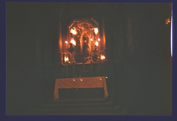 Holy Mary, mother of God is placed with fine decoration and arranged with illumination for the deity to offer their usual veneration. |