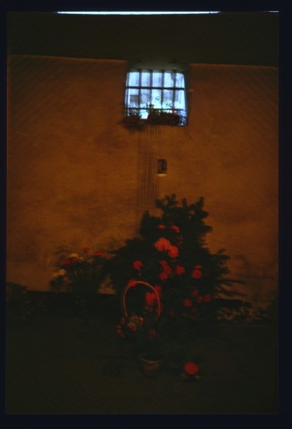 there is flower pot with lot of red flowers which is placed on the floor. |