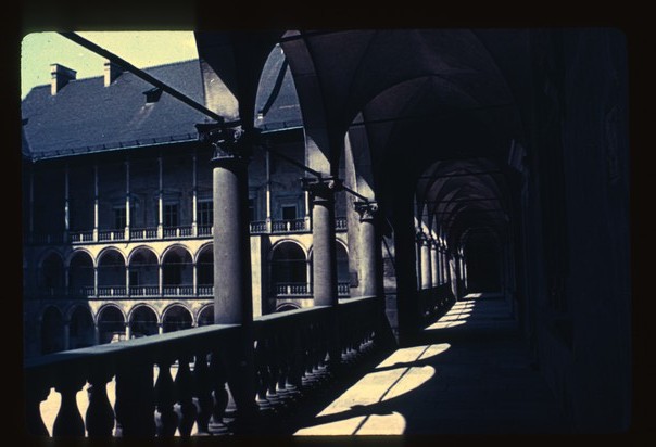 Balcony, shadows, columns, walk way, arches, rows, court yard, cement, solid, dark, light, empty, |