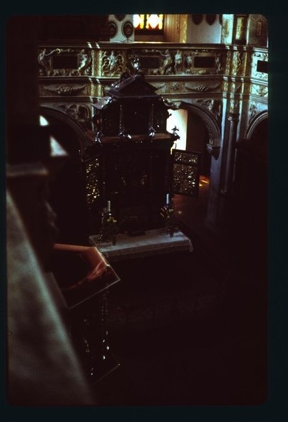 a interior portion of the church which having lot of sculpture works. |