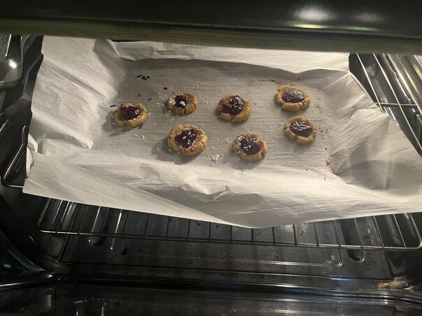 Since the recipe for the potatoes called for 6 egg whites, I had 6 yolks left over. So I decided to make some egg yolk cookies. They all came out amazingly well, but the jelly ones were SO good that we had to make another batch.