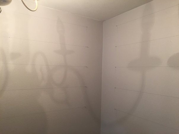 The shadow of a chandelier on the walls of a room with a white ceiling.