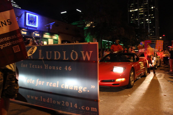After a full day out at the 2014 Pride Festival, Adrienne was kind enough to walk the entire parade route with me carrying my campaign billboard.