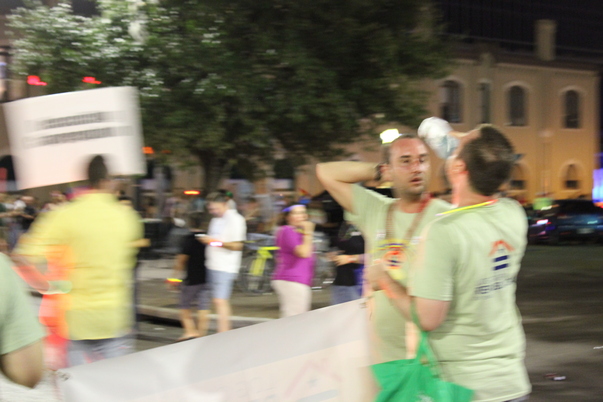 After a full day out at the 2014 Pride Festival, Adrienne was kind enough to walk the entire parade route with me carrying my campaign billboard.