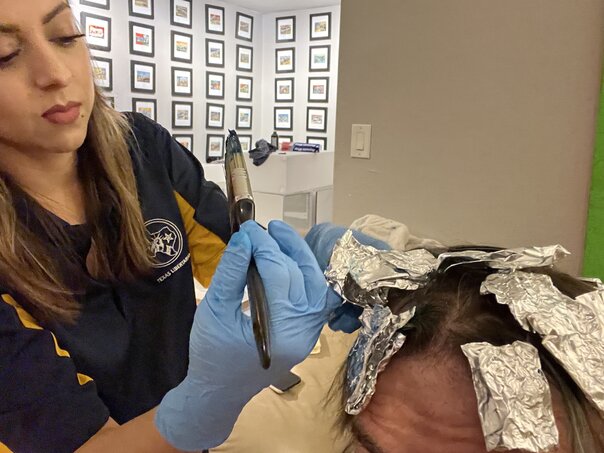 Thankfully, however, that won't be necessary as she did an absolutely spectacular job. ...despite the fact that I only had a full sized paintbrush and baking foil instead of the much thinner aluminum foil sheets (typically used for hair coloring).