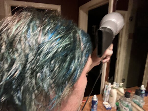 My last effort to blue my own hair worked, but was also a huge pain in the ass and made a bit of a mess. Plus, I really didn't do that wonderful of a job with it.