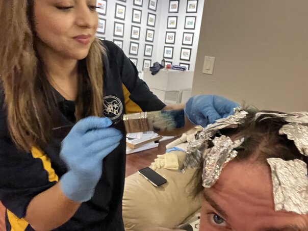 Thankfully, however, that won't be necessary as she did an absolutely spectacular job. ...despite the fact that I only had a full sized paintbrush and baking foil instead of the much thinner aluminum foil sheets (typically used for hair coloring).