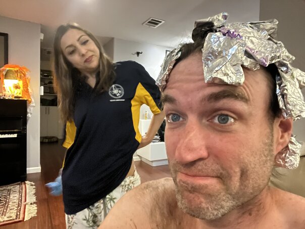 Thankfully, however, that won't be necessary as she did an absolutely spectacular job. ...despite the fact that I only had a full sized paintbrush and baking foil instead of the much thinner aluminum foil sheets (typically used for hair coloring).