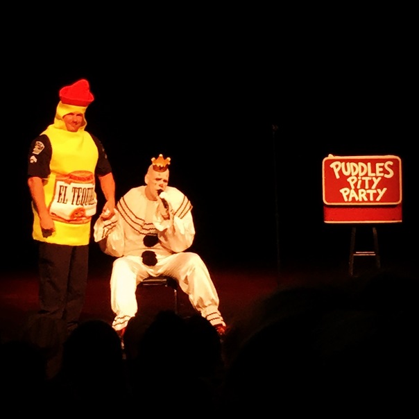 It has to be one of the most interesting and strange shows I've seen in my entire life. It was a combination of a slide show, with a live karaoke singer named Puddles the Clown who also happened to do comedy as it went on.