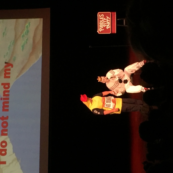 It has to be one of the most interesting and strange shows I've seen in my entire life. It was a combination of a slide show, with a live karaoke singer named Puddles the Clown who also happened to do comedy as it went on.