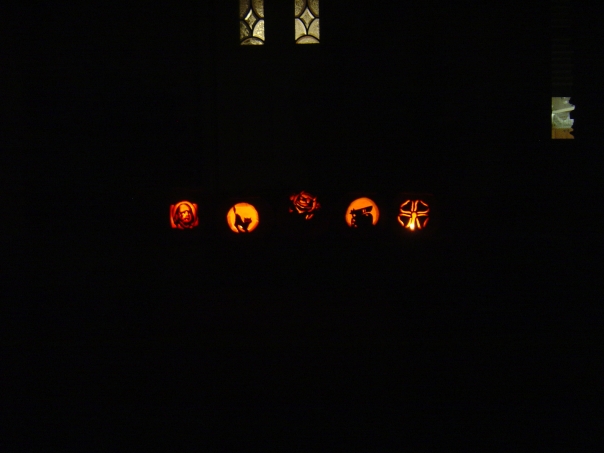 An ongoing tradition of pumpkin carving, these were the pumpkins that we came up with for the 2005 carving year. As always, our carving was done at the Crockett's house.