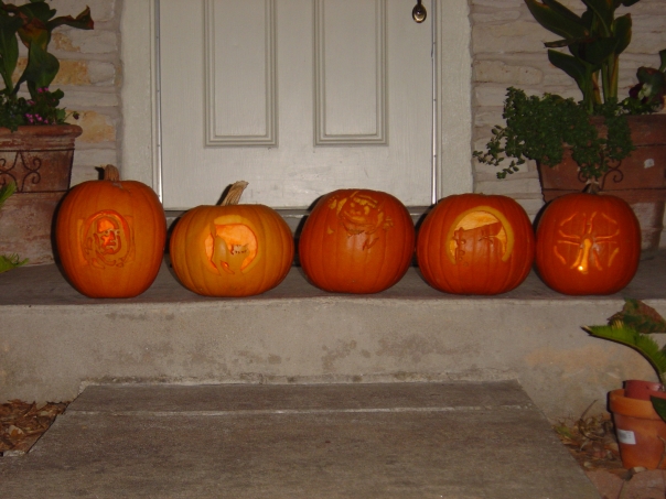 An ongoing tradition of pumpkin carving, these were the pumpkins that we came up with for the 2005 carving year. As always, our carving was done at the Crockett's house.