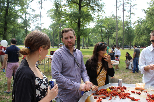 With little Putt on the way, Daniel and Maria had a crawfish boil at a rented pad in Memorial Park of Houston.