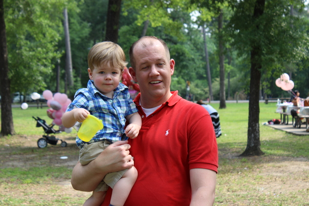 a candid shot of a father and son at the park